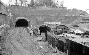 隧道(包括引道)全長1660m,下穿廣州路、清涼山路、龍蟠里、漢中路后在漢中門大街南側出地面,北引道起于海峽賓館附近(里程K1+725),南引道止于南京市基礎設施開發總公司附近(里程K3+385)。清涼門隧道(里程:K1+725~K3+385)沿線地貌為:構造剝蝕殘丘、階地(有坳溝發育)和秦淮河漫灘、構造剝蝕殘丘(K1+725~K2+240)、階地(K2+350~K2+650),坳溝(K2+240~ K2+350)、秦淮河漫灘(K2+650~K3+385)。支護設計采用鉆孔灌注樁、咬合樁、SMW工法樁、以及多道鋼支撐和砼支撐支護,局部高壓旋噴樁止水、加固坑底,開挖深度約12m。