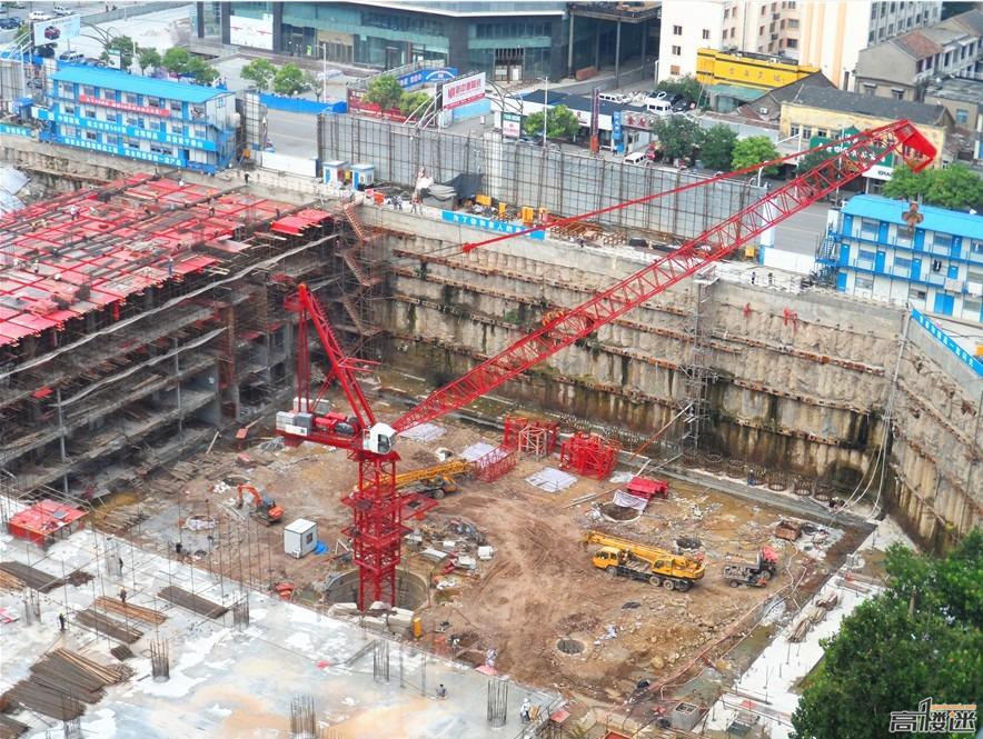 項目位于鎮江蘇寧廣場深基坑工程位于鎮江市中山東路與解放路交匯處西南角,地下室為地下四層,長約165.0m、寬約152.0m,周邊采用φ850@1200三軸攪拌樁止水,φ1000/1100鉆孔灌注樁擋土、內設置四道鋼筋混凝土支撐,基坑開挖深度19.4~22.7m。
